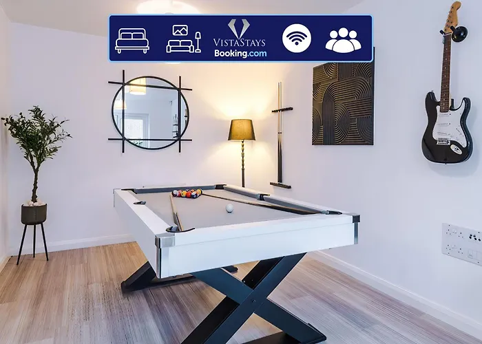 Cette propriété de Manchester comprend une cuisine, ainsi qu'un coin repas pour préparer vos repas. Vous pouvez également utiliser une bouilloire électrique, un réfrigérateur et un four pour préparer votre propre repas. Cette villa 3Bdr House By Vista Stays Short Lets & Serviced Accommodation Manchester With Pool Table And Driveway Parking se trouve non loin de Gringo's Grill, où vous pourrez déguster divers repas. L'aéroport le plus proche est de Manchester, à 20 km de cet hébergement.